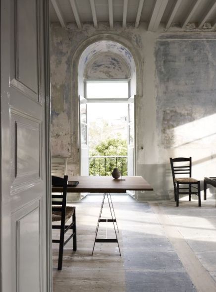 Au rez-de-chaussée, dans l'ancienne écurie, quelques murs sont tombés pour créer une